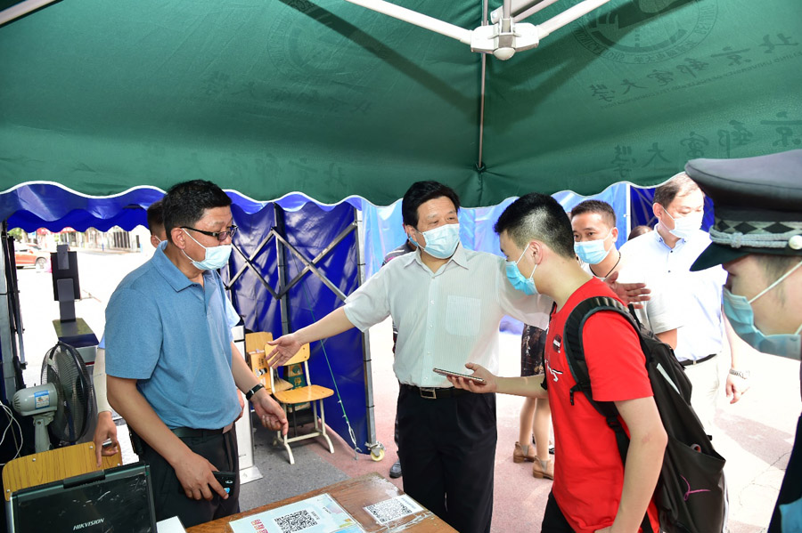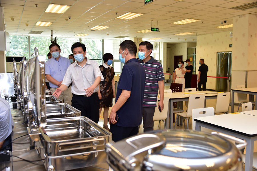 8月24日上午,校党委书记吴建伟、副校长赵纪宁、副书记李杰、副校长孙洪祥一行前往沙河校区,全面检查新学期学生返校工作开展情况。