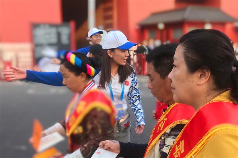 专项工作志愿服务团成立以来共开展2次专项培训,16学时通识培训,针对不同岗位分别开展不少于5次的岗位培训,3次岗位实地勘察,3次模拟演练。10月1日,庆祝大会东侧观礼台嘉宾的集结疏散引导工作均由我校志愿者直接负责,岗位覆盖故宫箭亭、东华门至阙左门嘉宾入场/疏散引导,部分志愿者直接于南侧观礼台上服务观礼嘉宾。联欢活动中我校志愿者服务于东侧观礼台嘉宾入场/疏散引导,岗位包括劳动人民文化宫全部疏散路线及东侧观礼台服务工作,部分志愿者于东侧观礼台直接服务观礼嘉宾。从培训到正式上岗,我校志愿者服务总时长超过11600小时。他们在核心区工作岗位上,提供了专业高效的服务的同时也展现了热情细致的工作态度,在庆祝大会、联欢活动中出色地完成志愿服务工作。