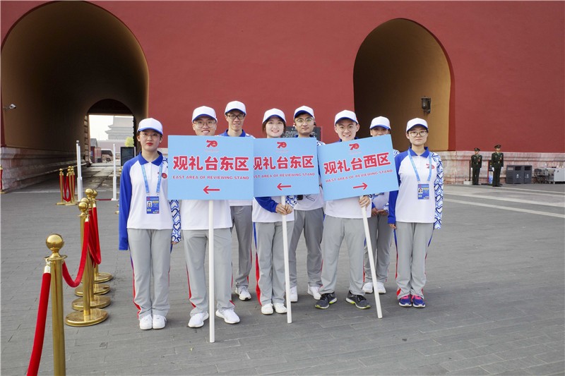 此次庆祝中华人民共和国成立70周年大会及联欢活动中,我校志愿者以饱满的热情、真诚的微笑、负责的态度,充分发扬了“奉献、友爱、互助、进步”的志愿精神和“崇尚奉献 追求卓越”的北邮精神,充分展现北邮学子昂扬向上的精神风貌,为祖国为人民留下一张最美的北邮名片。接下来,我校青年学生将不忘初心,牢记使命,砥砺热血,沸腾青春,为中华民族伟大复兴中国梦贡献北邮的青春力量!