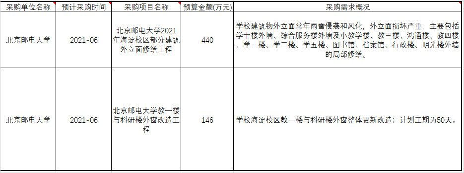 为便于供应商及时了解政府采购信息,根据《财政部关于开展政府采购意向公开工作的通知》(财库〔2020〕10号)等有关规定,现将北京邮电大学2021年6月政府采购意向公开如下: